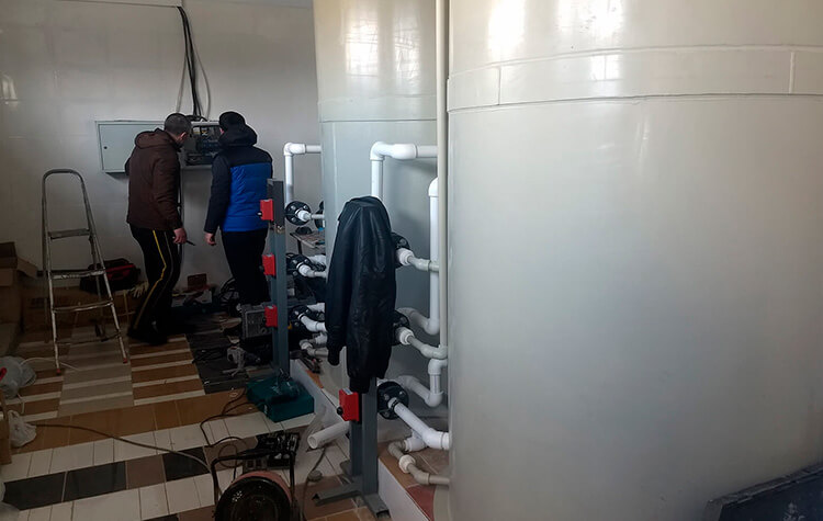 В первом случае от Заказчика требуется произвести подготовительные работ на площадке размещения сооружений, во втором — мы предоставляем услуги наших специалистов по шеф-монтажу системы.