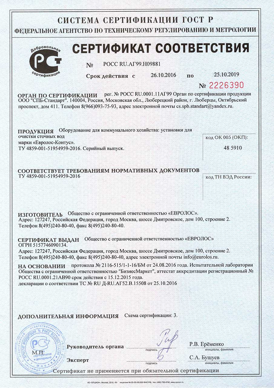 Евролос Контус® очищает сточные воды до уровня абсолютно безопасного для экологии и пригодного для сброса в окружающую среду.