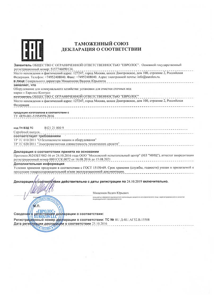 Система Контус® способна обрабатывать от 10 до 10 тыс. м3 в сутки.